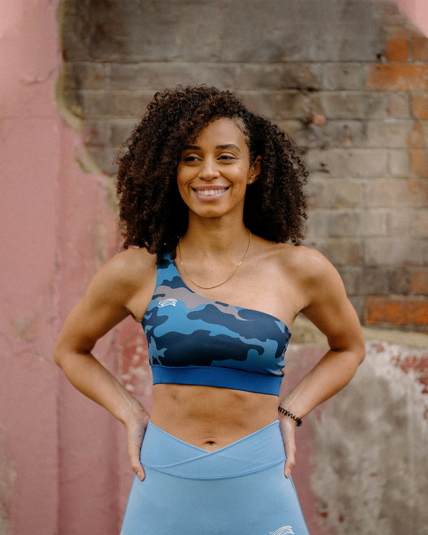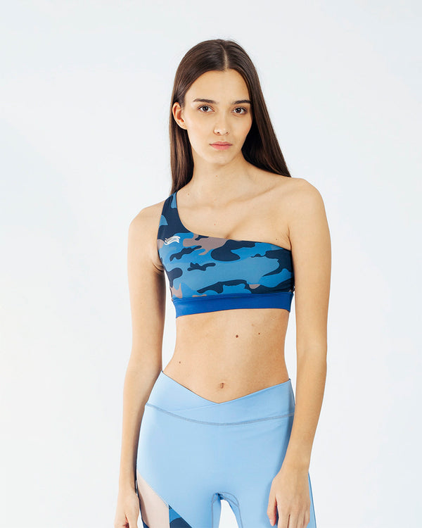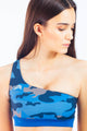 Looking for one shoulder sports bra that's as stylish as it is functional? Look no further. Not only does this bra offer High-level support and a fully lined design for easy removal of pads, but it also features a bold and eye-catching Navy military print makes you looks like a conqueror.